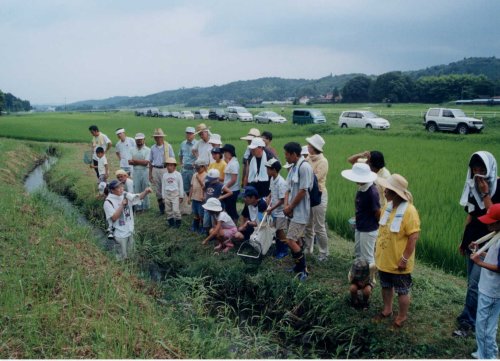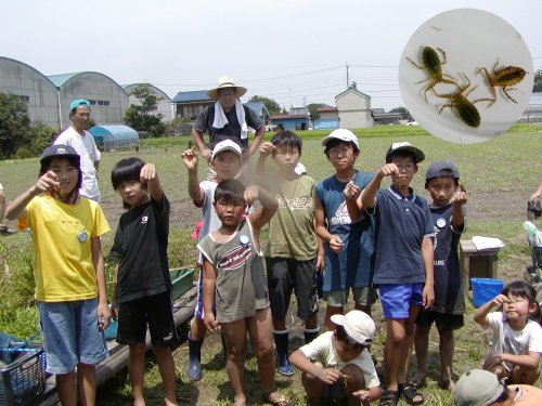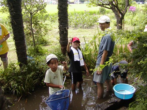 | タガメの赤ちゃんを全員で池に帰しました。 (何人かが刺されてイタタタ) |