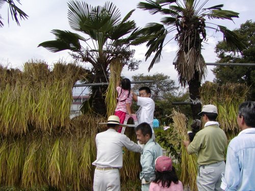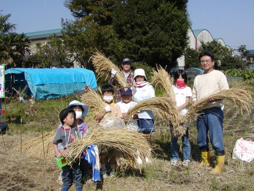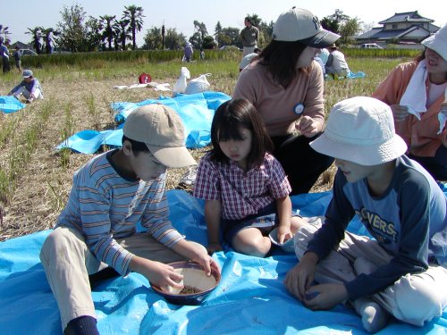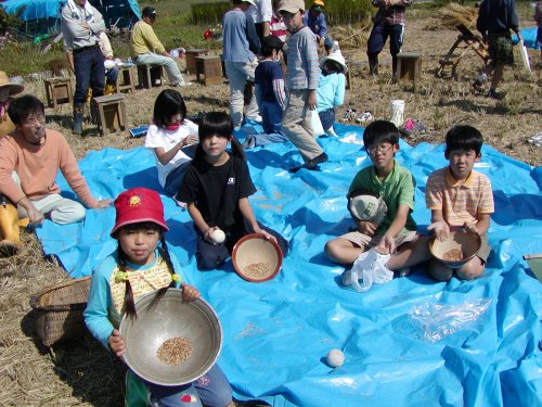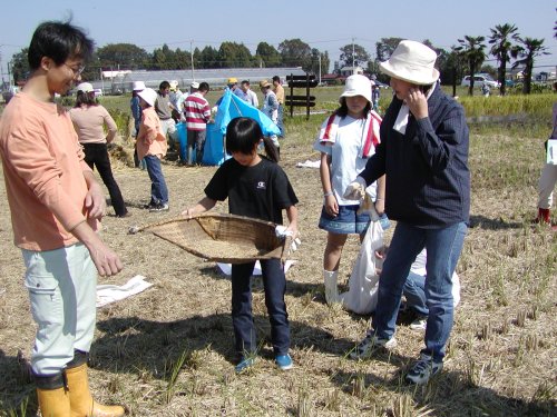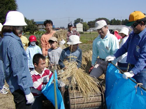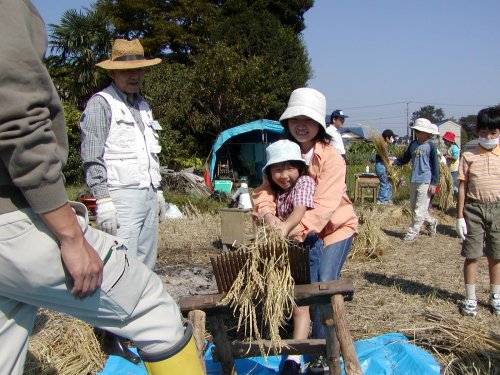 稲刈りには7組の親子が参加し、脱穀籾すりには16組の親子が参加しました。