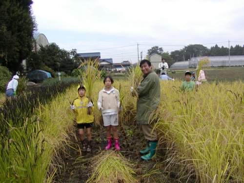 親子で稲刈りです