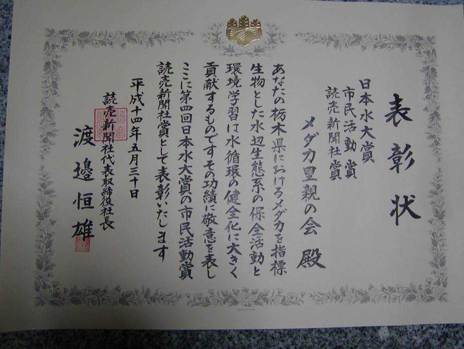 第4回日本水大賞(市民活動賞)を頂きました。